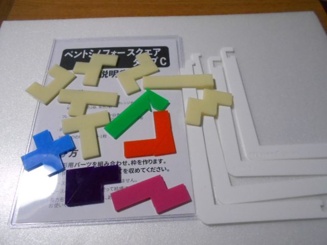 ピースを枠に収めて 指示された形の空間(空き地)を作るパズル