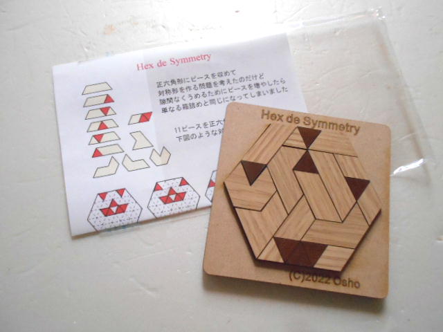 正六角形の枠内で対称形を作るパズルを考えていたのですが 枠を埋めてしまったので