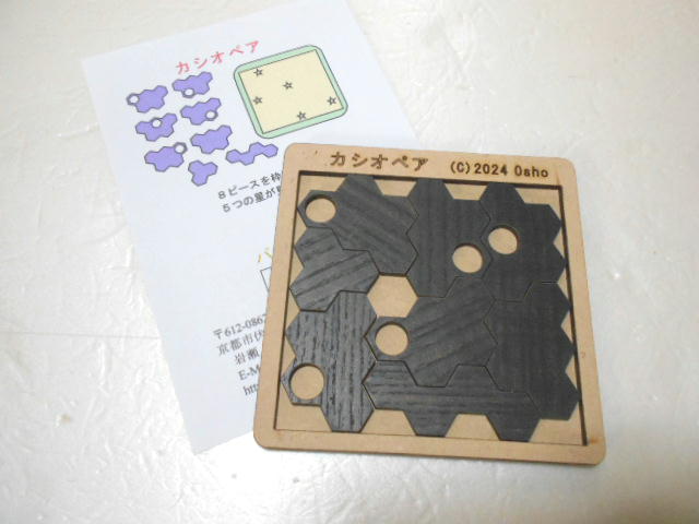 同じ色のピースが辺でも頂点でも接しないように 7ピースを枠に収めてください