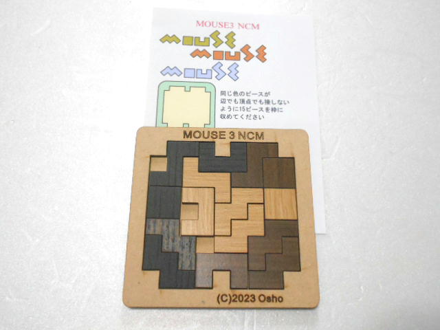 同じ色のピースが辺でも頂点でも接しないように 15ピースを枠に収めてください
